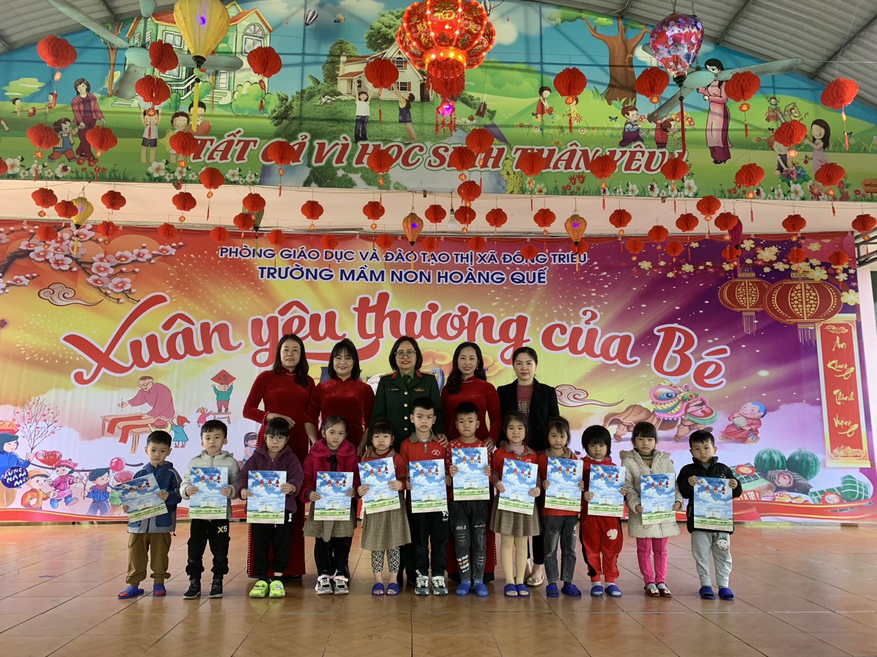Ngày 13/01/2023 Nhân dịp Tết nguyên đán Quý Mão 2023 Công ty cổ phần 397 - Tổng công ty Đông Bắc - Bộ Quốc phòng đến thăm và tặng quà cho học sinh khó khăn trường Mầm non Hoàng Quế.